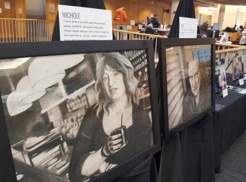 We were overwhelmed to welcome over 160 people for a public screening of “A Walk Through Poverty” at the Downtown Spokane Public Library on January 25th. “A Walk Through Poverty” is a 30-minute film exploring the plight and complexity of poverty, specifically here at home in the Inland Northwest. The pairing of the art installation plus movie screening is designed to evoke curiosity and immerse viewers in the conversation, inviting us all to relate and see ourselves in the situations presented. Laura Papetti of KREM thanked the guests for choosing to be there to witness the film, acknowledging that they could be spending their time doing any number of other things. She encouraged everyone to consider how poverty affects each of us and the community while viewing the film, and to help continue the momentum the film has created about addressing poverty and how we can all be part of the solution.